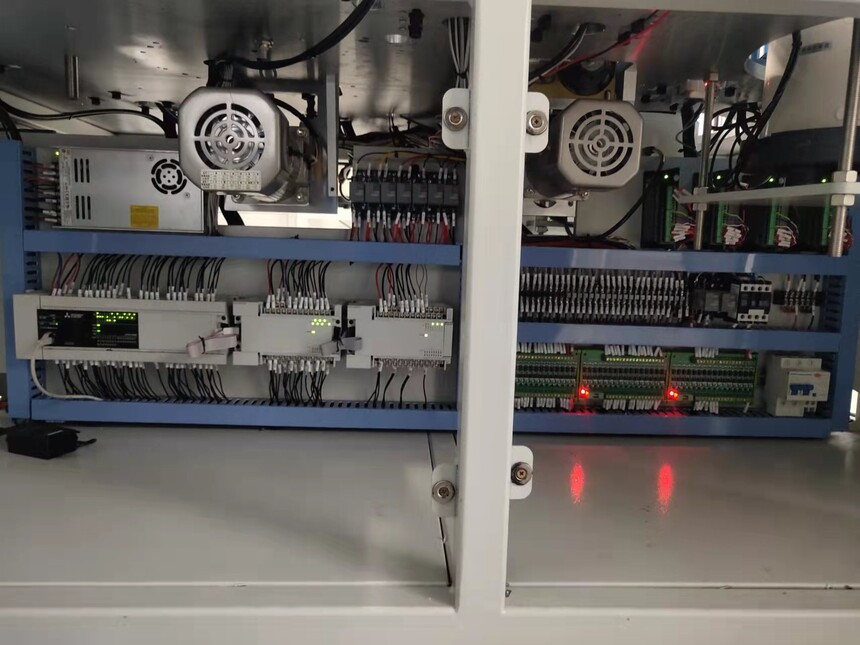 机器名称:RC5M自动装配机 机器用途:实现针脚基座,针脚,接地片等产品的自动插针,组装,检测等工艺。 产品用途:音频/视频接插件产品配件组装。 设备产能:1100PCS/H及以上。 设备性能:针脚基座,针脚,接地片等产品通过振动盘组件以一定的排列方向运送至分料机构,经分料及夹取机构后完成各工件的上料、组装等功能,其中插针数量可实现两插针至九插针不等;该设备包含有CCD视觉检测,对产品尺寸,外观等进行检测,后进行良品不良品分选;该设备包含产品计数、产能预设、缺料检测、故障报警显示及停机等功能。 设备配置:采用威伦通触摸屏、三菱PLC编程、松下光纤放大器感料、上银直线导轨、亚德客气缸、台达伺服等驱动,45#钢镀硬铬,SKD11材料真空热处理,机架采用40*40铝型材,40*40方通管制作,钣金烤漆处理! 人员配备:1人多机 主要参数: 外形尺寸:1500MM(L)*1500MM(W)*1800MM(H) 使用电压:220V AC 50HZ 使用气压:0.5MPa -0.7MPa